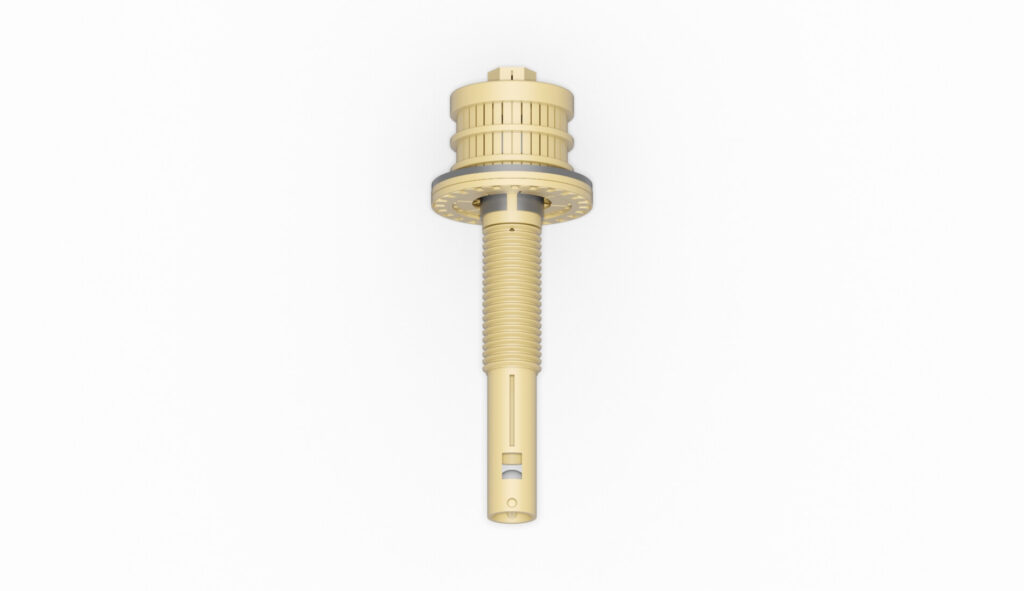 Filterdüse für den Einsatz in Mischbettfilteranlagen. Das Luftpolsterrohr ermöglicht eine gleichmäßige Verteilung von Spülluft. Der Schimmkörper im innern des Luftpolsterrohres reduziert den Durchfluss in Regenerationsrichtung. Das Regenarionsmedium tritt durch die Lamellenscheiben unmittelbar über dem Düsenboden aus. So erreichen Sie eine optimale Durchströmung des Filtermediums. Sie möchten eine Bestellung aufgeben oder haben eine Frage zu dem […]