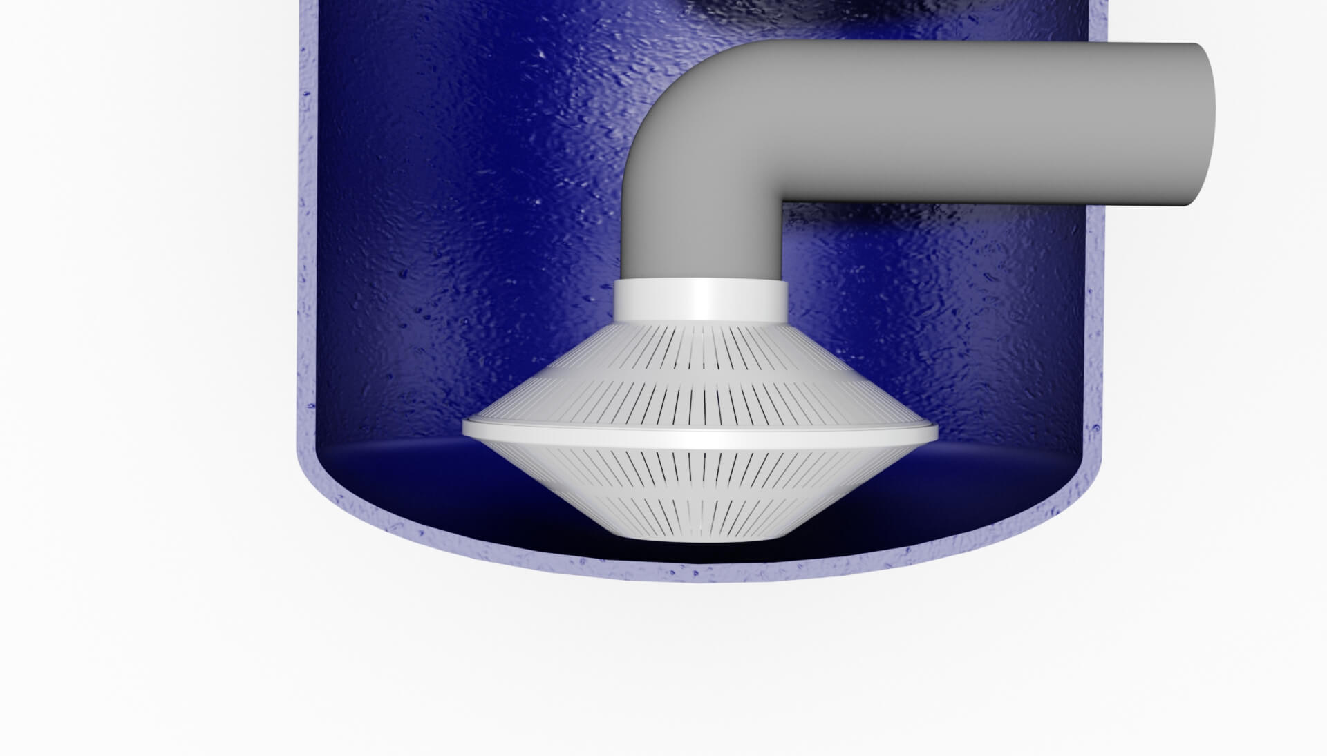 Der untere Verteiler Typ UV bildet die einfachste Form eines Abzugsystems. Er kann direkt auf das Abzugsrohr geklebt werden und sorgt dort dafür, dass das Filtermedium zurückgehalten wird.