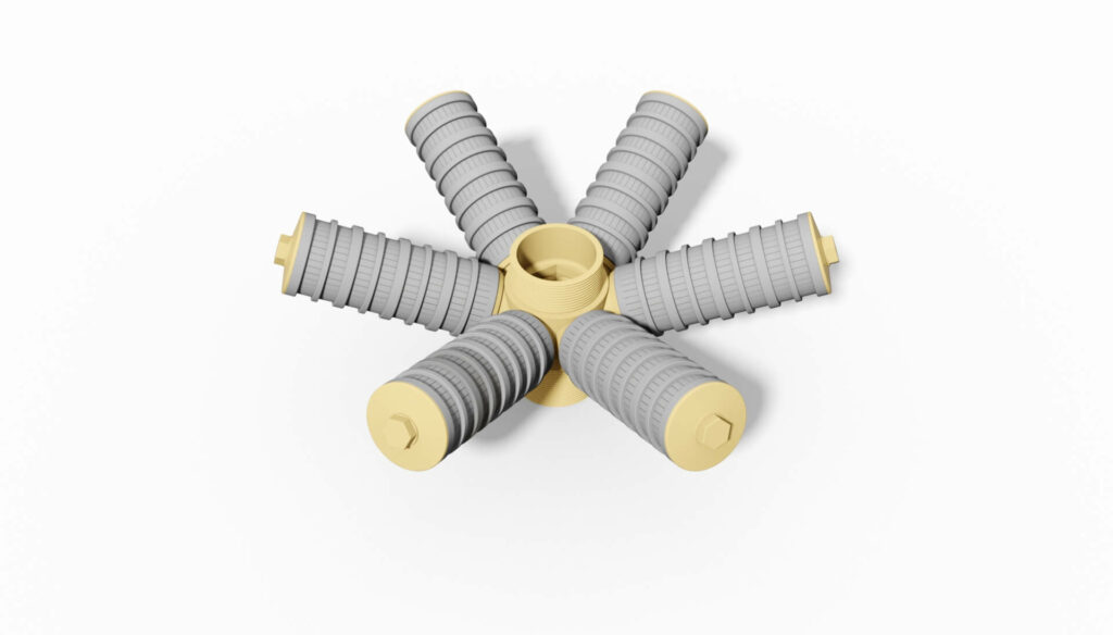 Sternsystem SS6 mit sechs Filterarmen Typ A4 oder A5. Das Zentralrohr des Behälters kann in das Mittelstück eingeklebt werden. Die Filterarme werden durch einen Schnellverschluss montiert. Die Länge der Filterarme resultiert aus dem Gesamtdurchmesser des Systems. Sie möchten eine Bestellung aufgeben oder haben eine Frage zu dem Produkt? Wir freuen uns auf Ihre Anfrage.