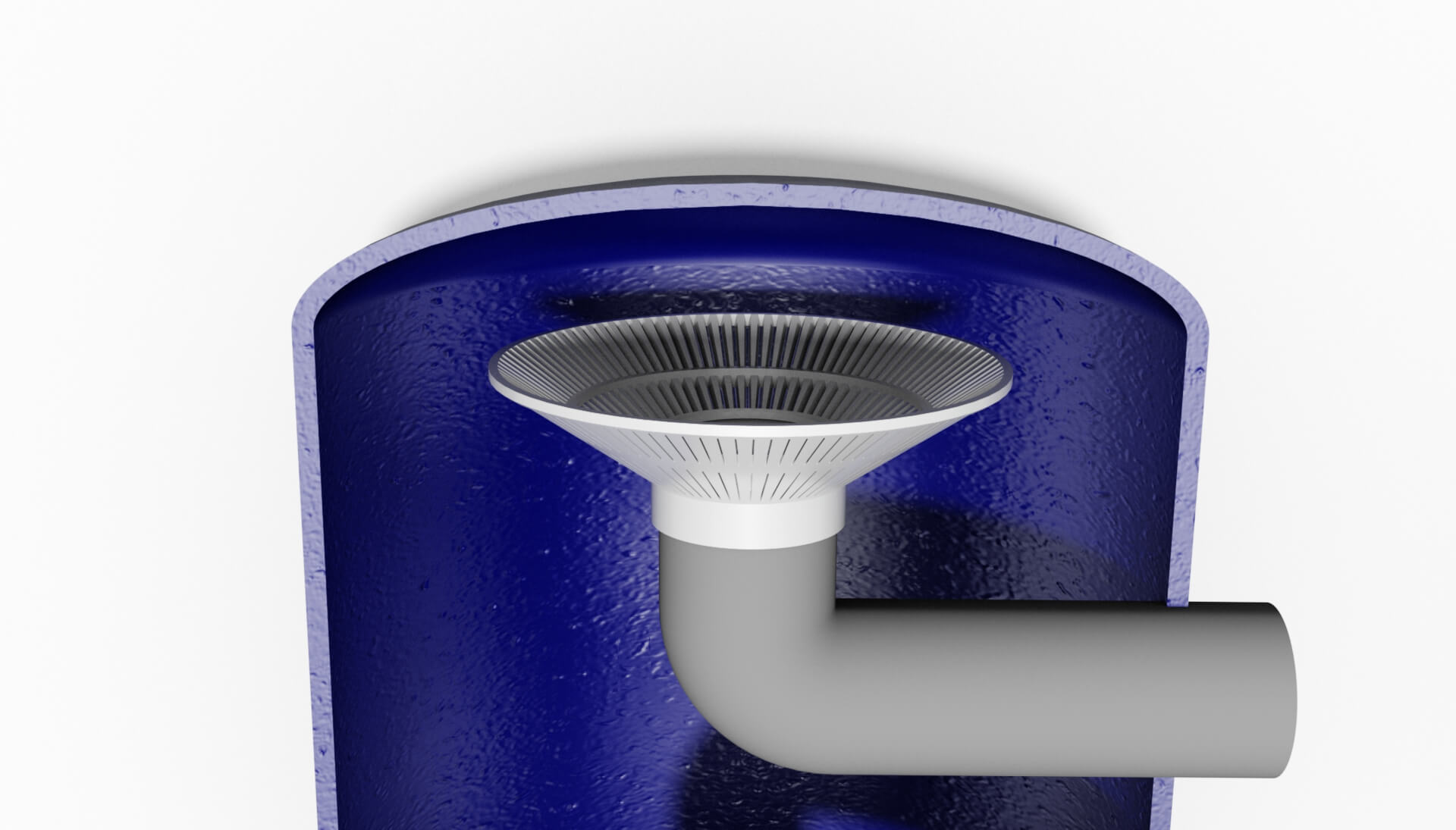 Der obere Verteiler Typ OV kann direkt auf das vertikale Zuflussrohr des Filters geklebt werden. Er verbessert die Verteilung der einströmenden Flüssigkeit.